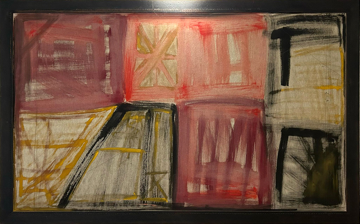 La Partenza, pigmenti su tela ad installazione chiodi e fil di ferro, esposto al Guggenheim di Venezia nel 2003 dove gli artisti viventi non possono esporre a me è successo, 12 opere di m 2 x 1 sulla terrazza del museo.